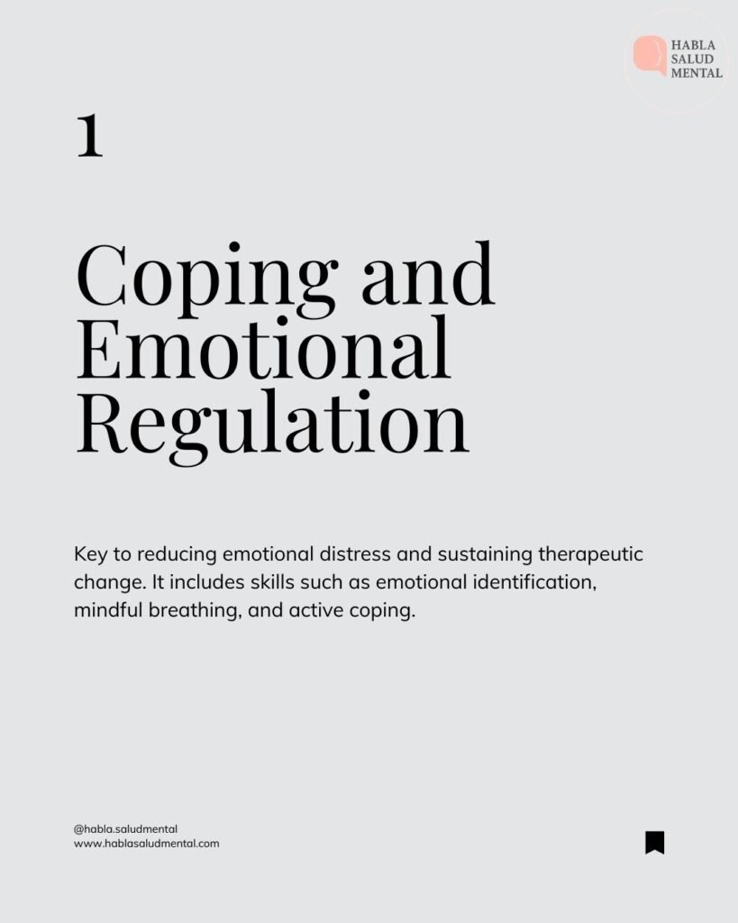 Within the 17 evidence-based clinical competencies, the first focuses on the management and regulation of emotions. This skill is fundamental to reducing emotional distress and sustaining therapeutic change over time.