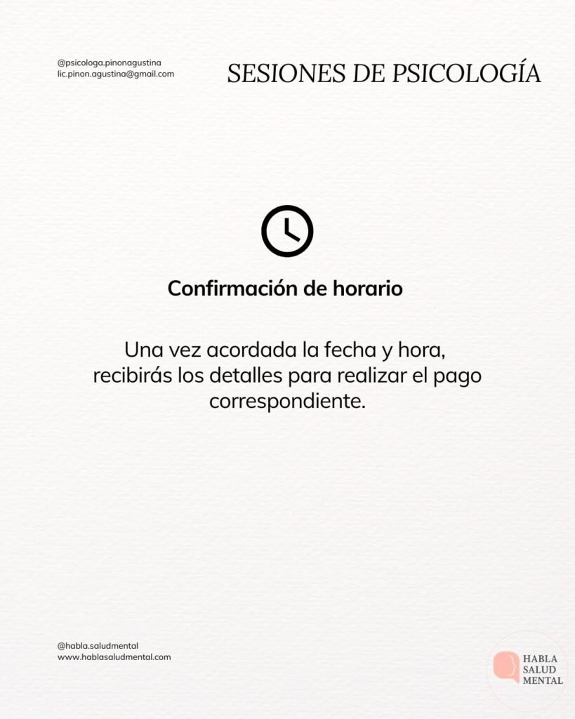 Confirmación de horario: Una vez acordada la fecha y hora, recibirás los detalles para realizar el pago correspondiente.