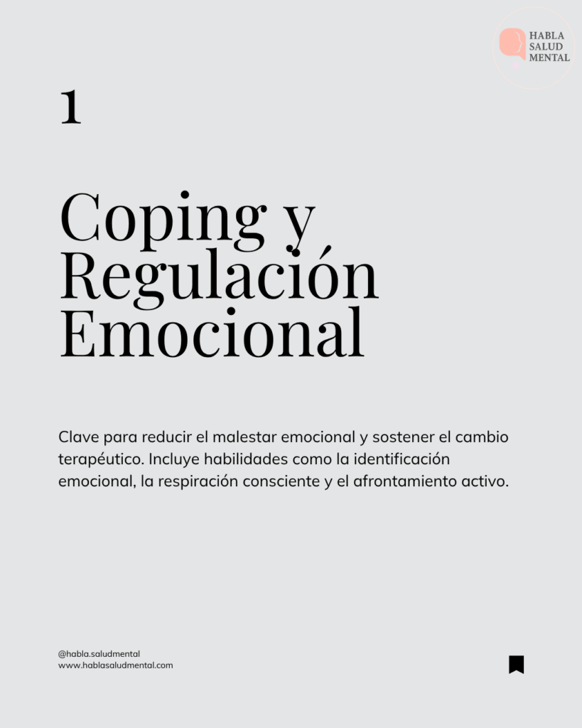 Dentro de las 17 competencias clínicas basadas en evidencia, la primera se centra en el manejo y regulación de las emociones. Esta habilidad es fundamental para reducir el malestar emocional y sostener el cambio terapéutico a lo largo del tiempo.
