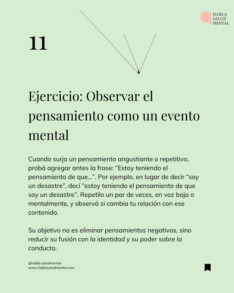 👉 El objetivo no es eliminar pensamientos negativos, sino reducir su fusión con la identidad y su poder sobre el comportamiento.