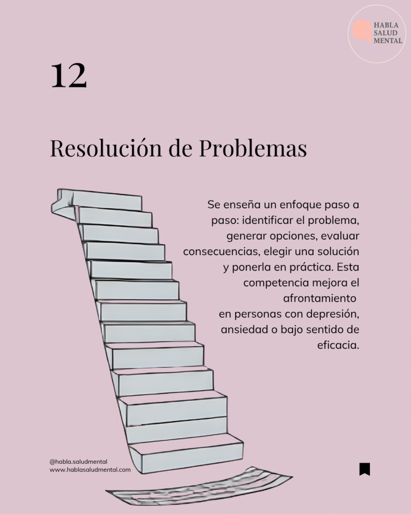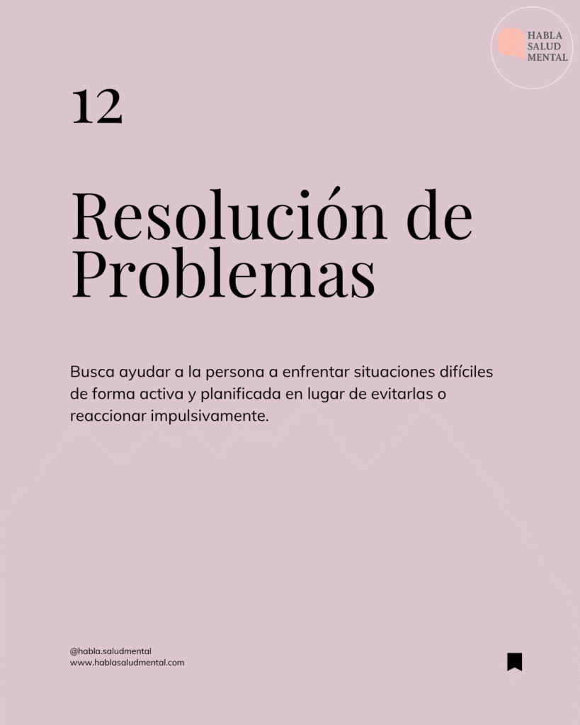 La resolución de problemas es una competencia clínica que ayuda a las personas a enfrentar situaciones difíciles de forma activa y planificada, en lugar de evitarlas o reaccionar de manera impulsiva.